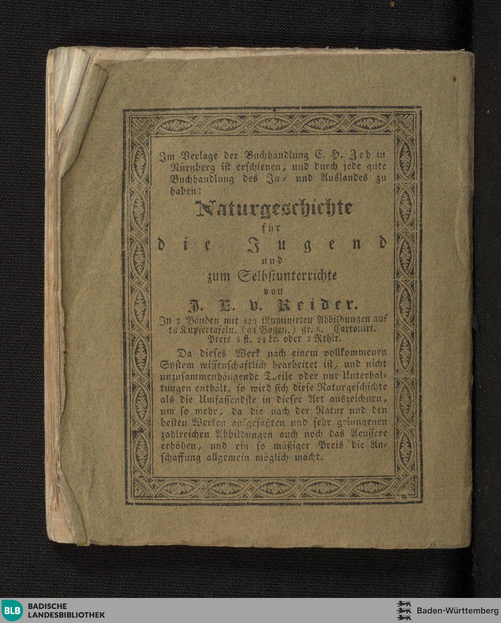 Anleitung zur leichtesten und zweckmäßigsten Hyacinthenzucht im Garten und im Zimmer : sammt der Beschreibung des Saamenhändlers Falcke zu Nürnberg berühmten Hyacinthenflors : auf dreisigjährige Erfahrung mit zu Grundlegung aller ältern und neuern Beobachtungen berühmter Blumisten / von Jacob Ernst von Reider, königl. bayer. erstem Landgerichts-Assessor, mehrerer gelehrten, ökonomischen Gesellschaften Mitgliede