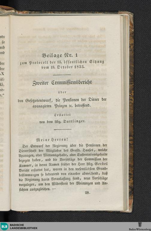 Beilagen zur 85. Sitzung (18.10.1833)