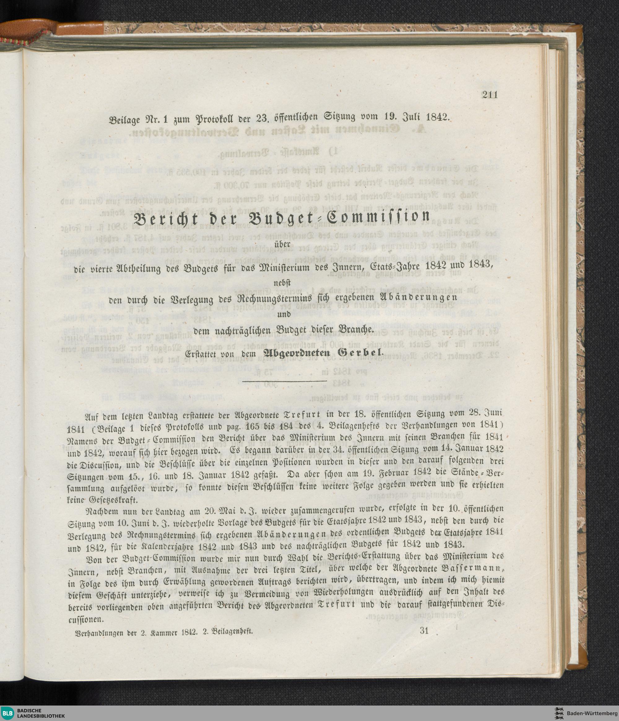 Beilagen zur 23. Sitzung (19.07.1842)