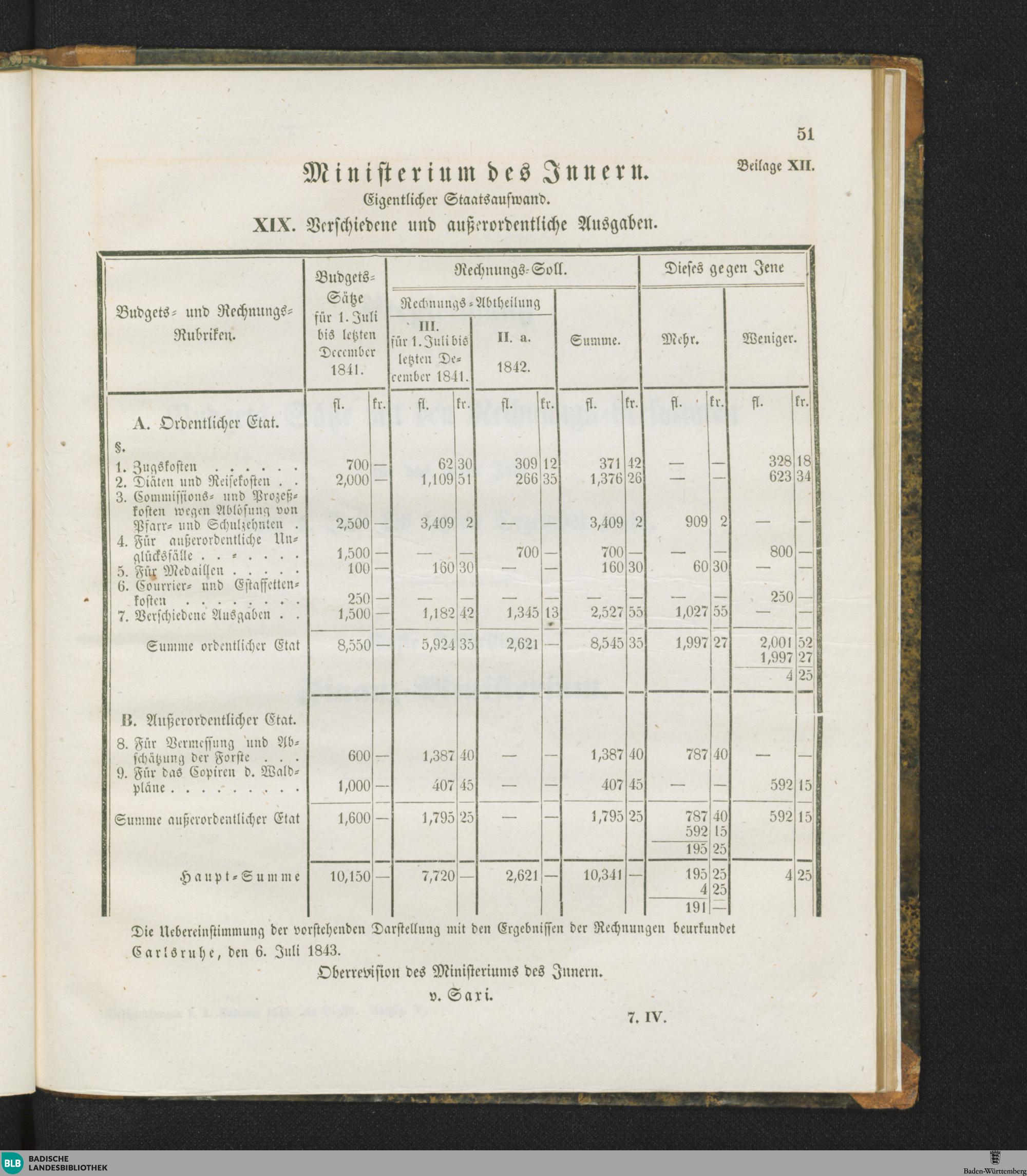 Vergleichung der Budgets-Sätze mit den Rechnungs-Resultaten für das halbe Jahr vom...