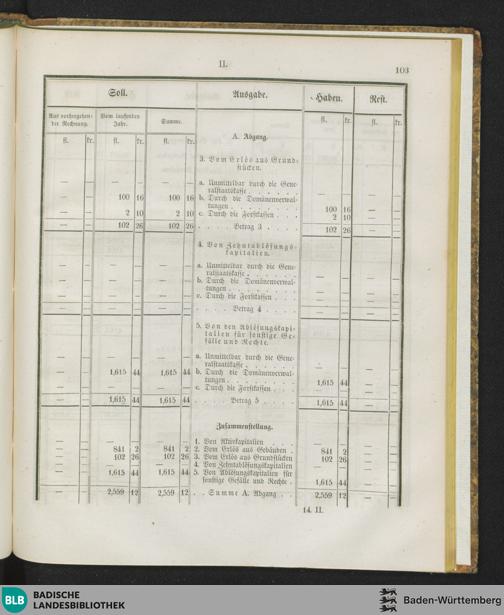 Einnahmen und Ausgaben für den Domänen-Grundstock vom 1. Januar bis letzten Deze...