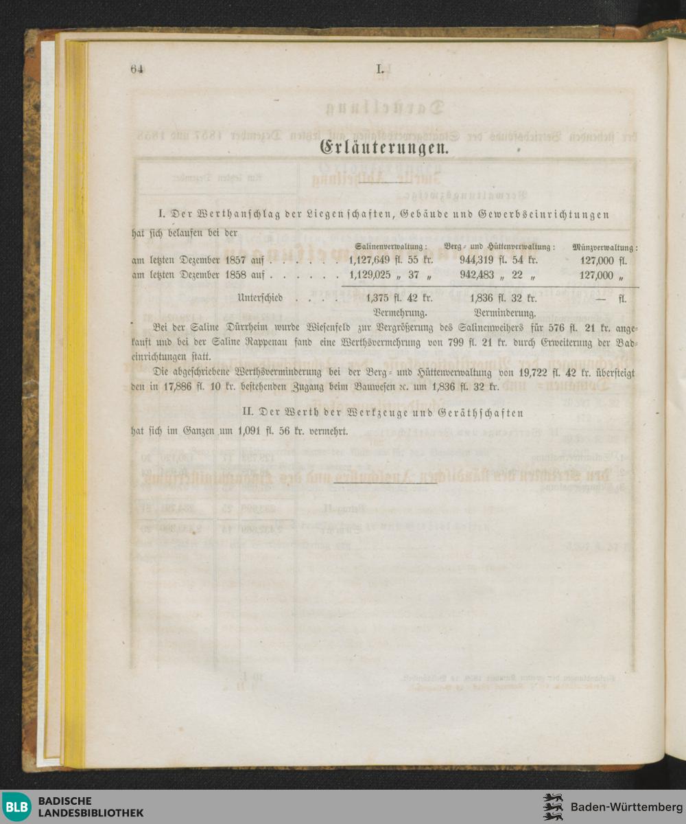 Darstellung des stehenden Betriebsfonds auf letzten Dezember 1858