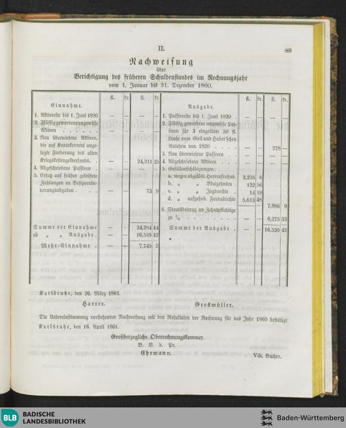 Summarische Darstellung der Amortisationskasserechnung für 1860 mit der Hauptbilanz...