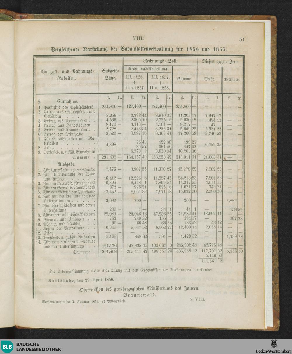 Vergleichende Darstellung für 1856 und 1857 nebst Erläuterungen hierzu