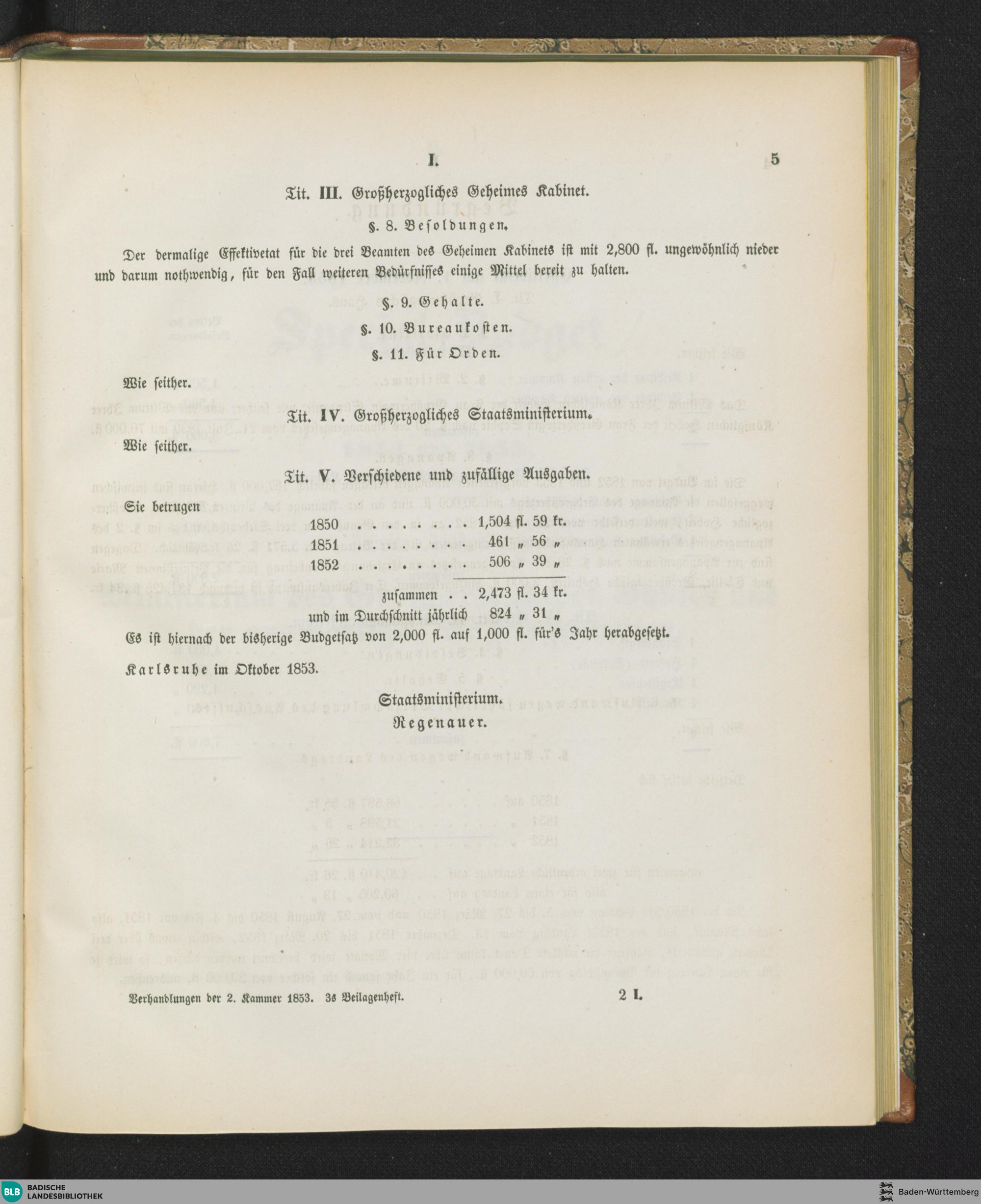 Special-Budgets für 1854 und 1855