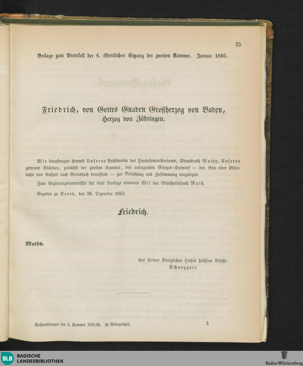Beilagen zur 6. Sitzung (15.02.1866)