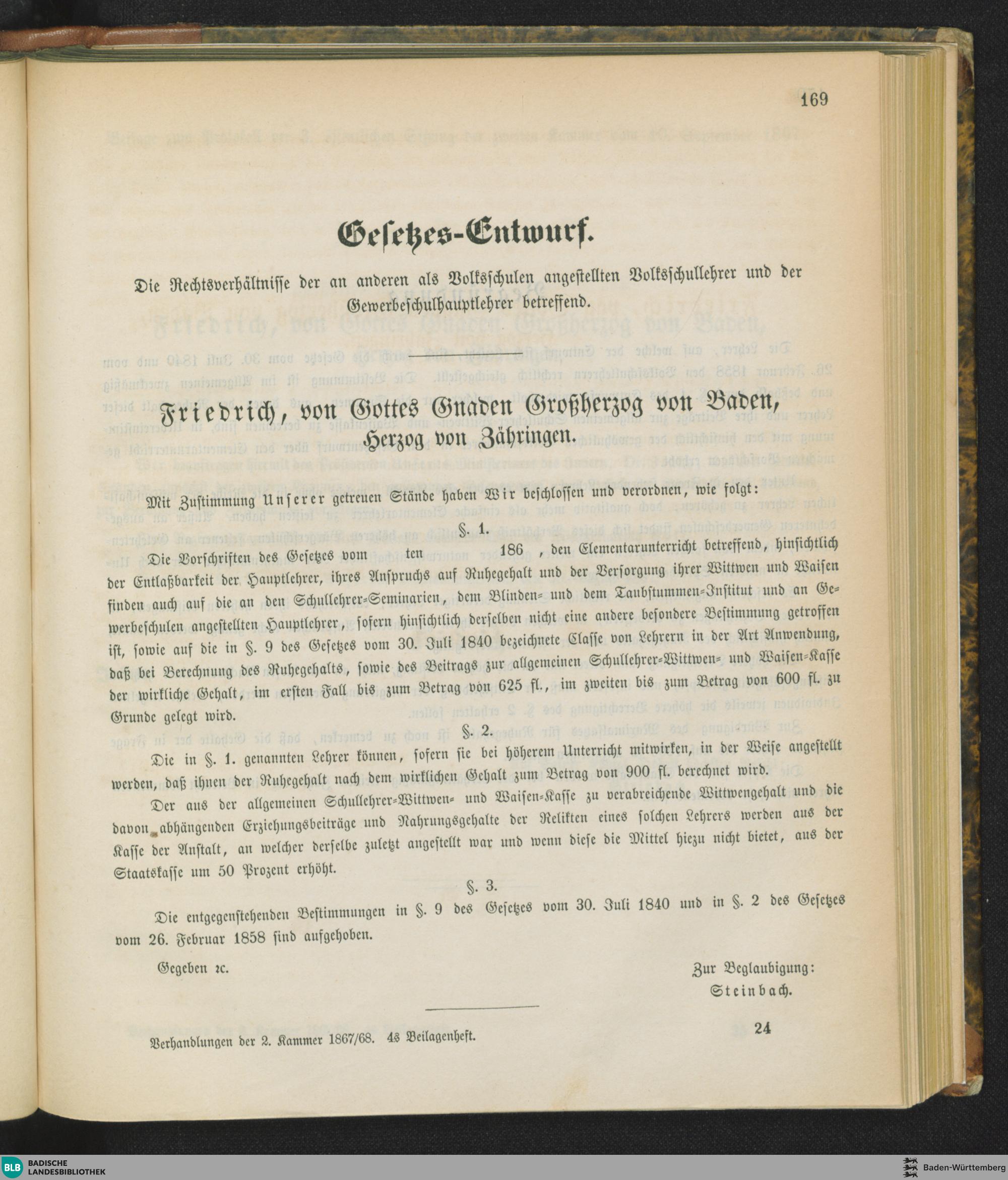 Gesetzesentwurf, die Rechtsverhältnisse der an anderen als Volksschulen angestellten...