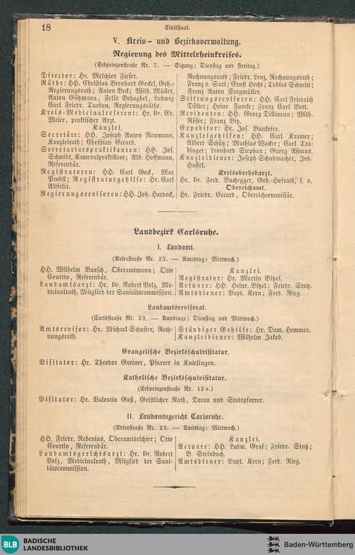 Adresskalender für die Residenzstadt Karlsruhe