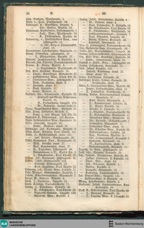 Verzeichniß der Einwohner nach alphabetischer Ordnung, nebst Angabe ihrer Wohnun...