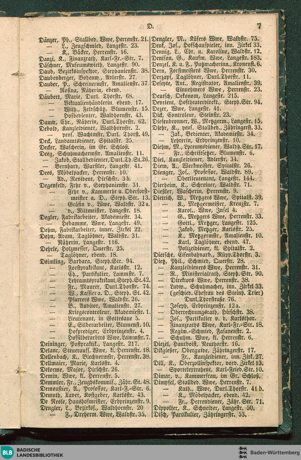 Verzeichniß der Einwohner nach alphabetischer Ordnung, nebst Angabe ihrer Wohnun...