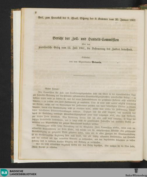 Beilagen zur 9. Sitzung (20.01.1862)