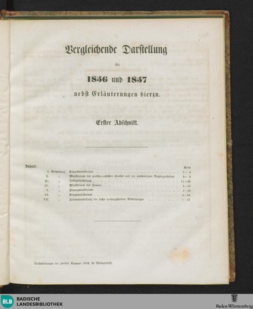 Vergleichende Darstellung für 1856 und 1857 nebst Erläuterungen hierzu