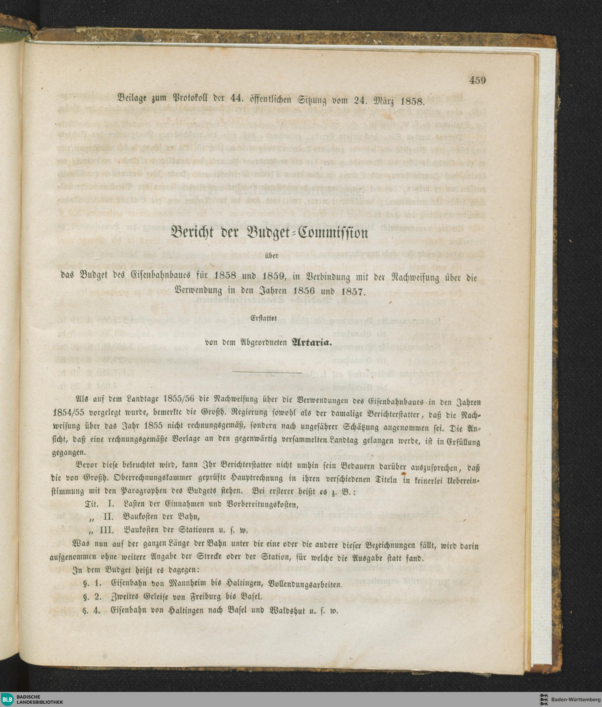 Beilagen zur 44. Sitzung (24.03.1858)