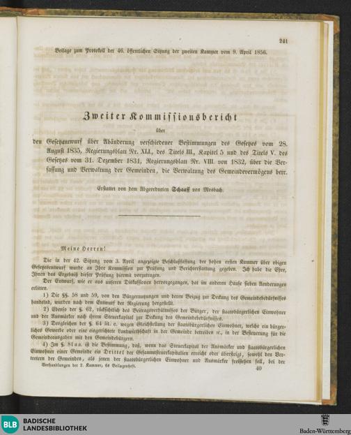 Beilagen zur 46. Sitzung (09.04.1856)
