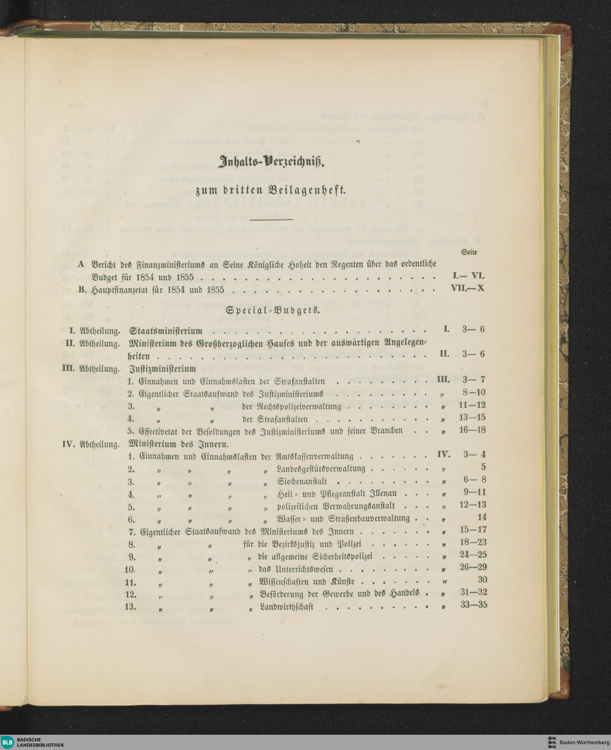 Inhalts-Verzeichniß zum dritten Beilagenheft