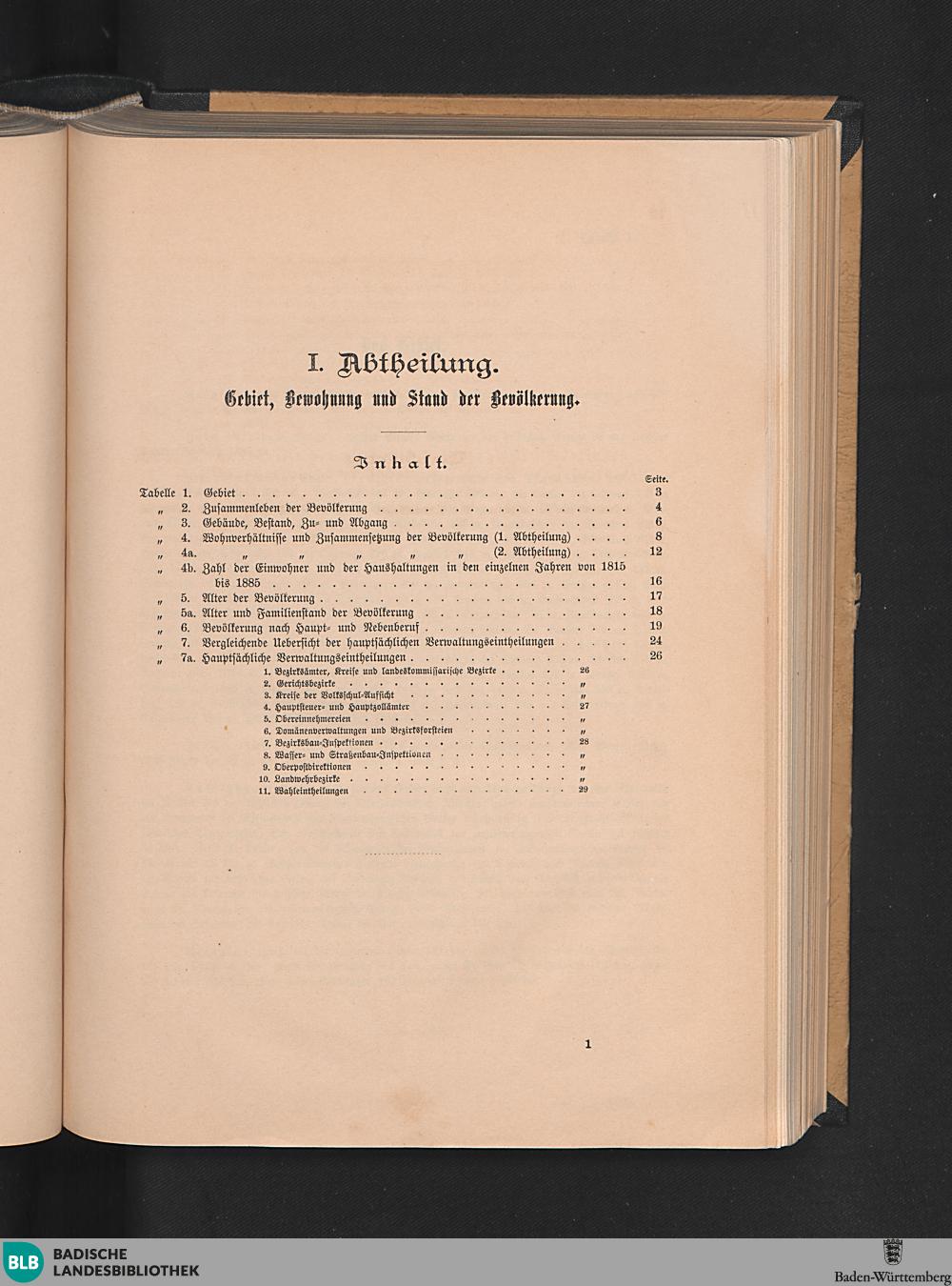 I. Abtheilung. Gebiet, Bewohnung und Stand der Bevölkerung