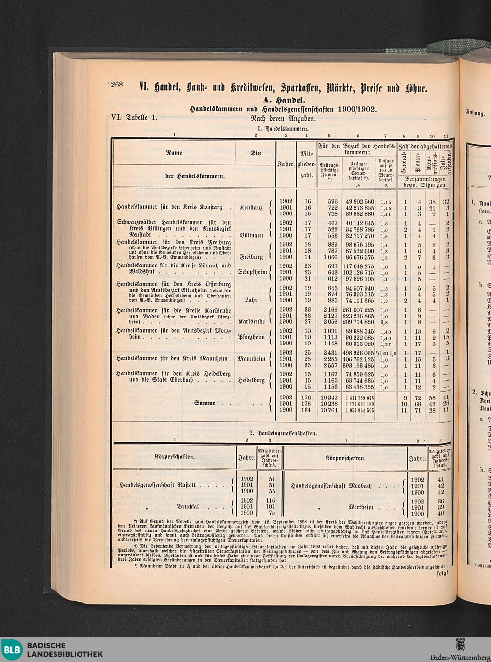 VI. Handel, Bank- und Kreditwesen, Sparkassen, Märkte, Preise und Löhne