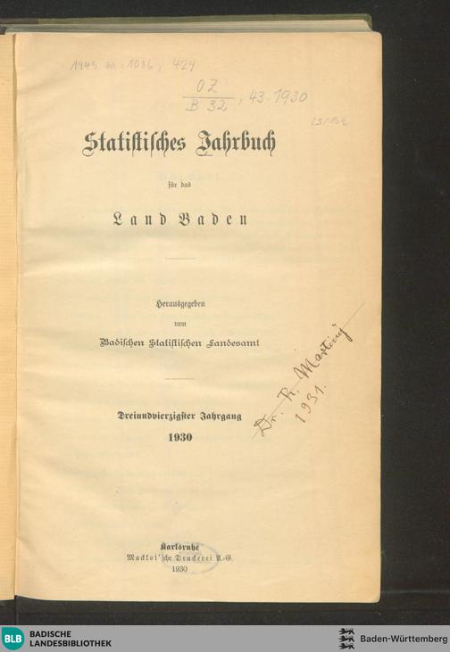 Statistisches Jahrbuch Baden und Württemberg - digitalisiert