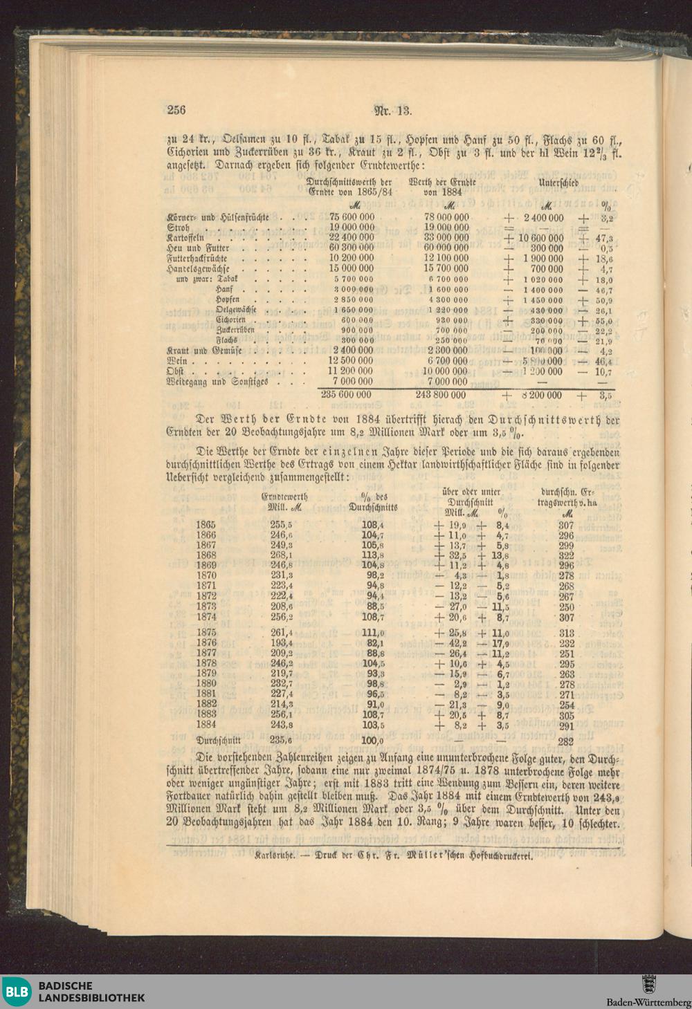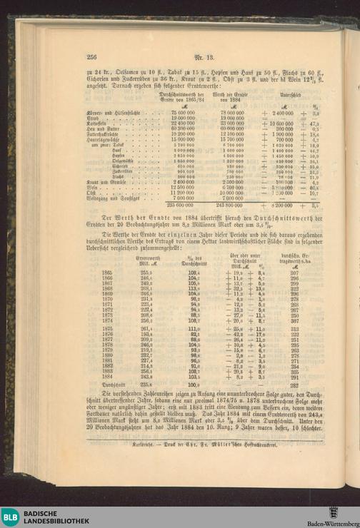 Die landwirthschaftlichen Anbauflächen und die Erndte des Jahres 1884