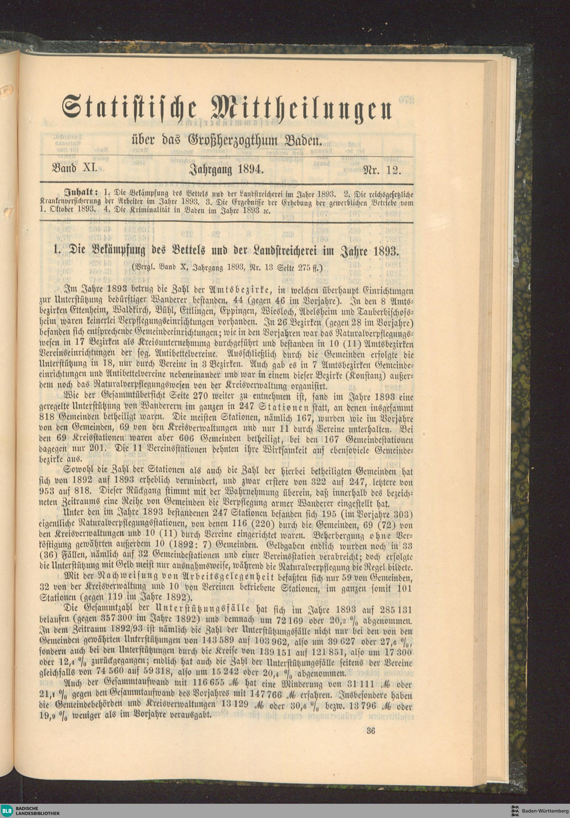 1. Die Bekämpfung des Bettels und der Landstreicherei im Jahre 1893
