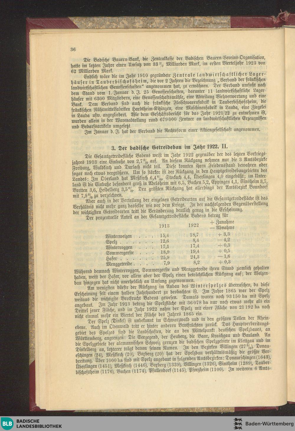 3. Der badische Getreidebau im Jahr 1922. II.