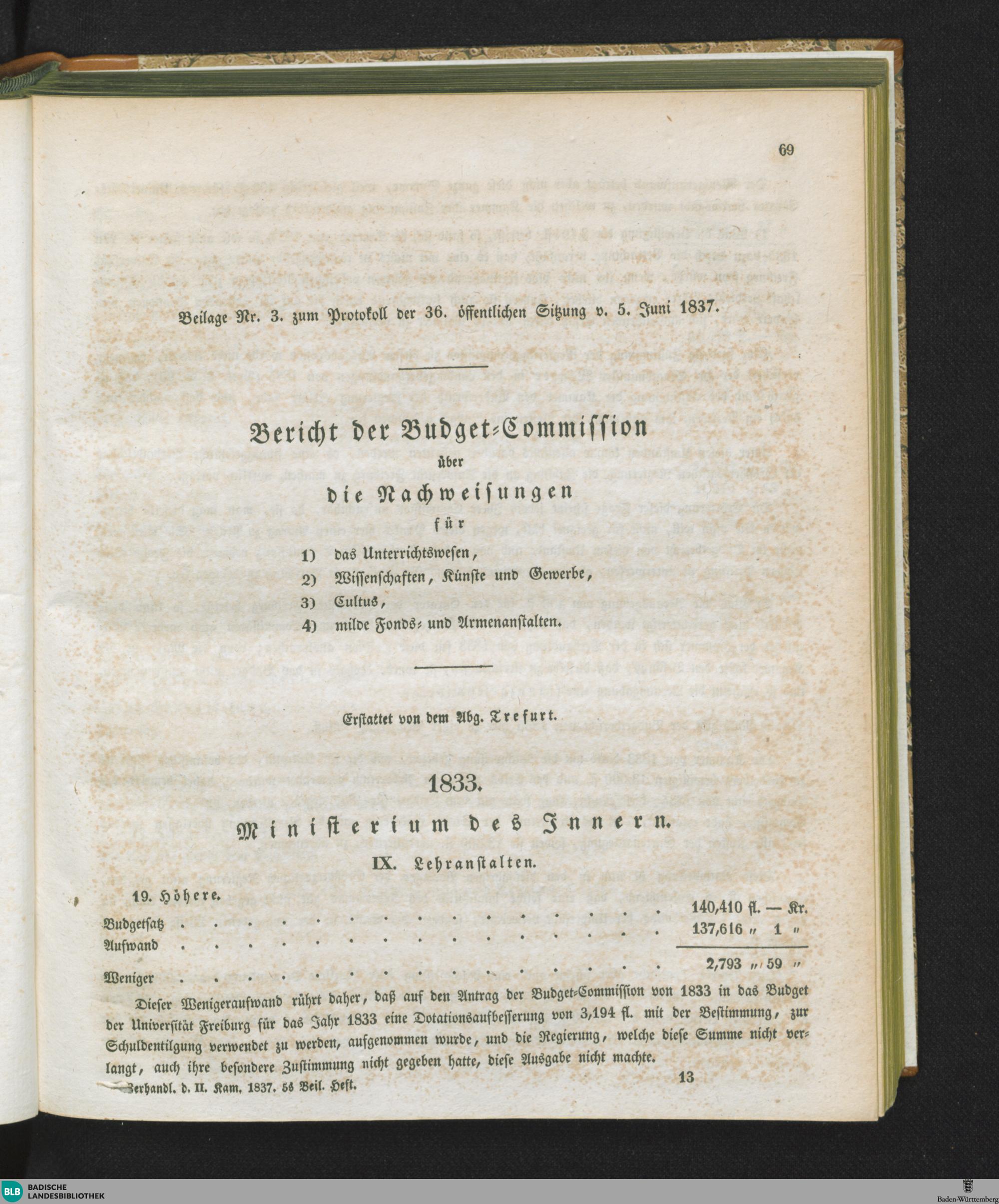 Beilagen zur 36. Sitzung (05.06.1837)