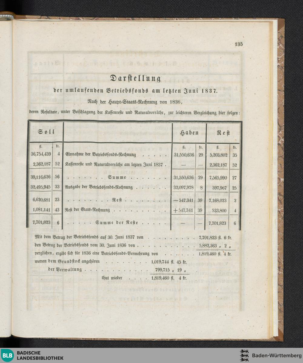 6. Umlaufende Betriebsfonds am letzten Juni 1837 nach der Hauptstaats-Rechnung von...