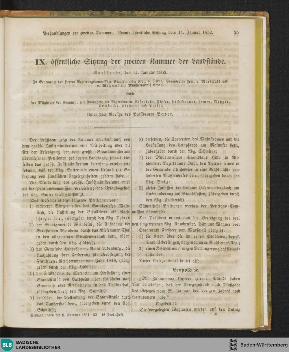 9. Sitzung (14.01.1852)
