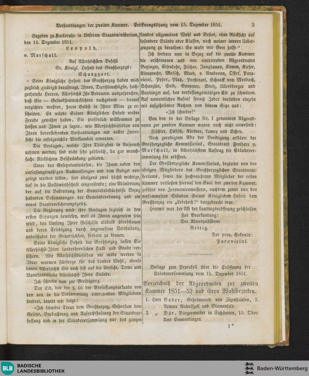 Eröffnung der Ständeversammlung (15.12.1851)
