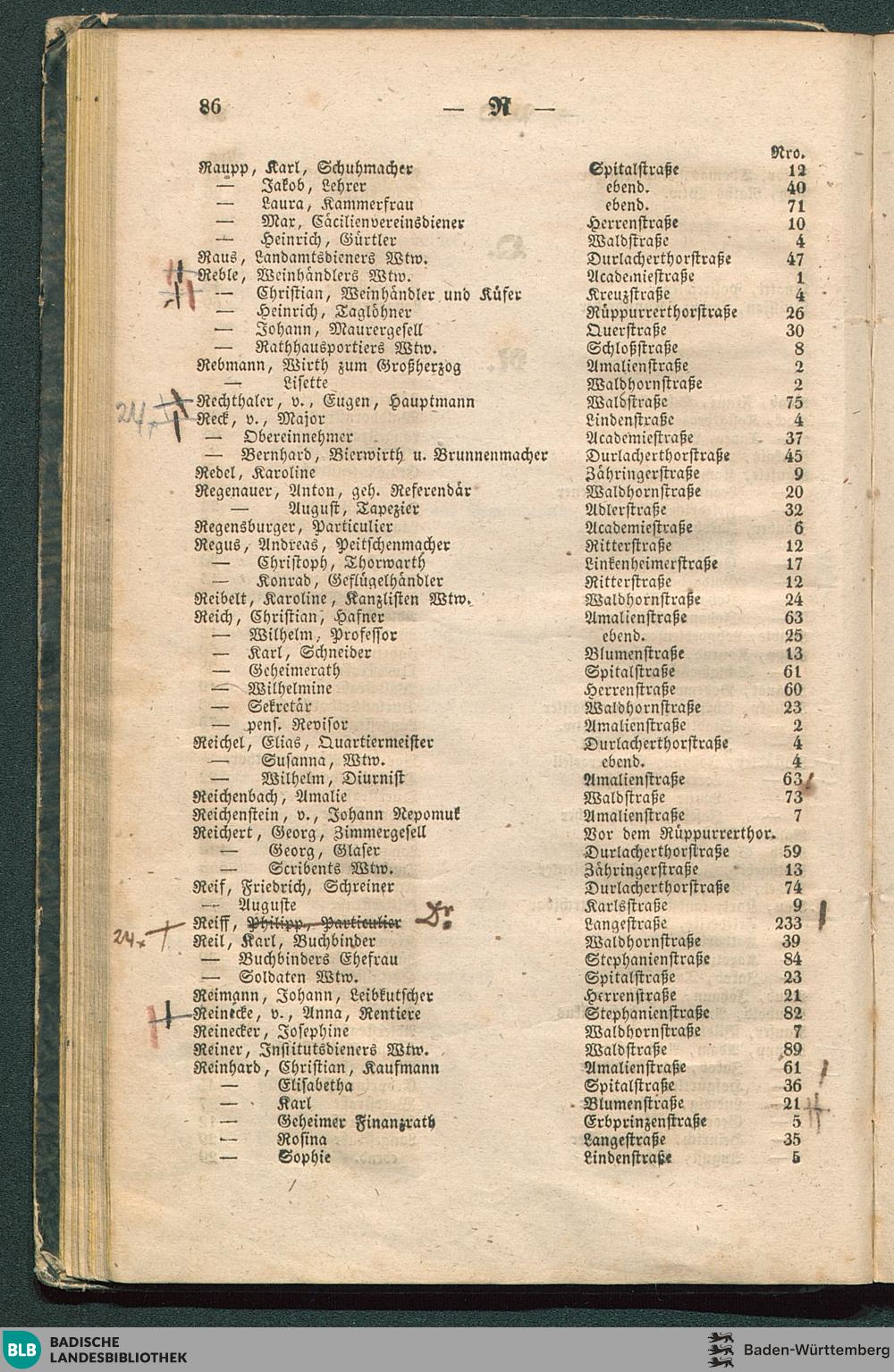 Verzeichniß der Einwohner nach alphabetischer Ordnung, nebst Angabe ihrer Wohnun...