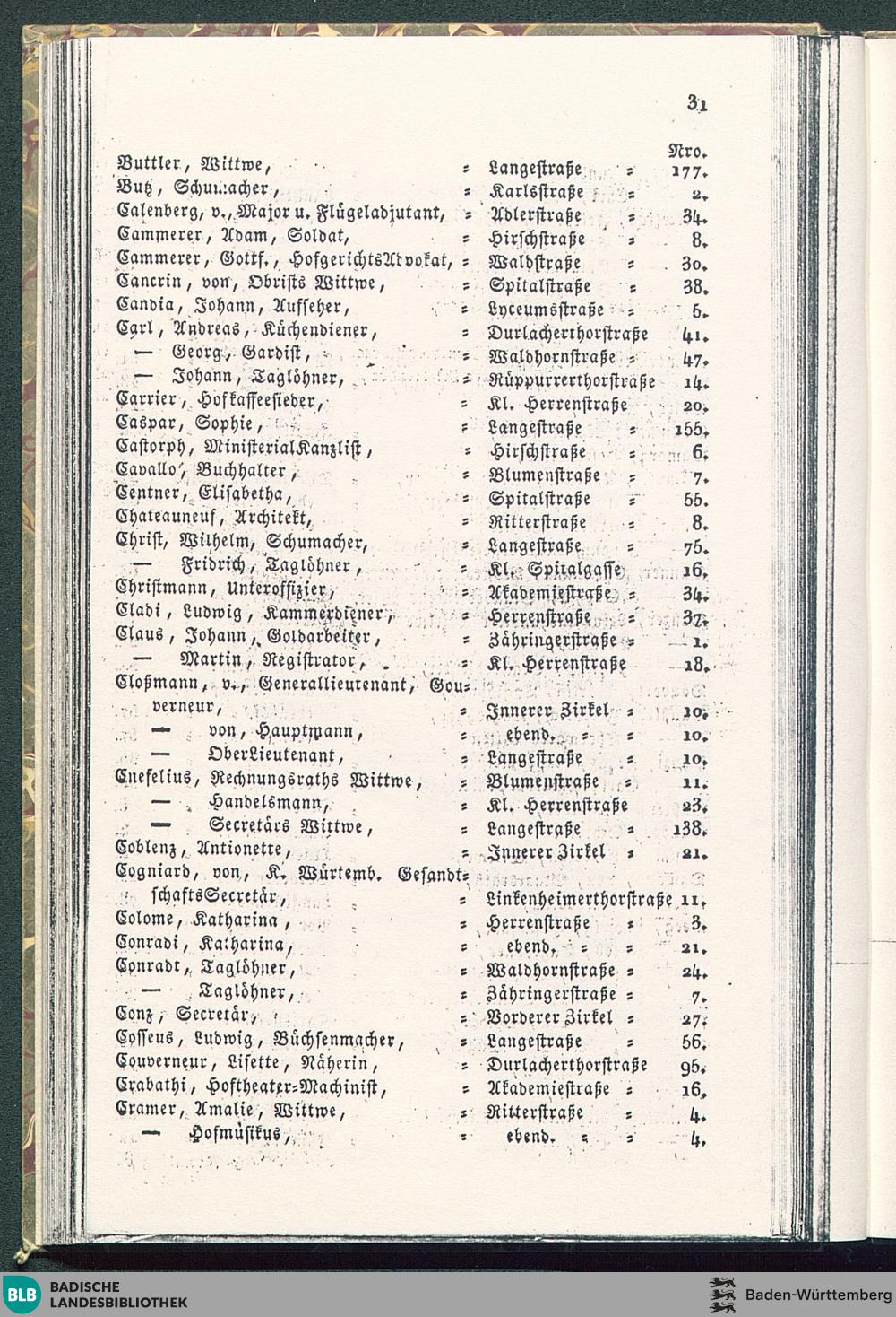 Alphabetisches Register der Hausbewohner nebst Angabe ihrer Wohnungen