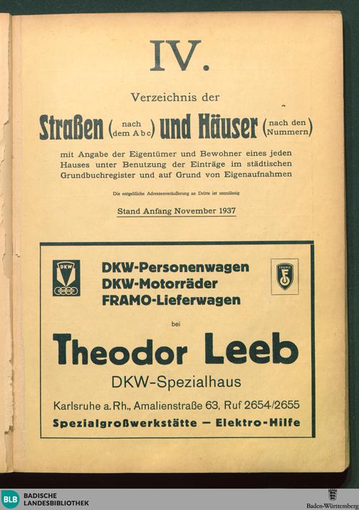 IV. Verzeichnis der Straßen (nach dem Abc) und Häuser (nach den Nummern) mit Angabe...