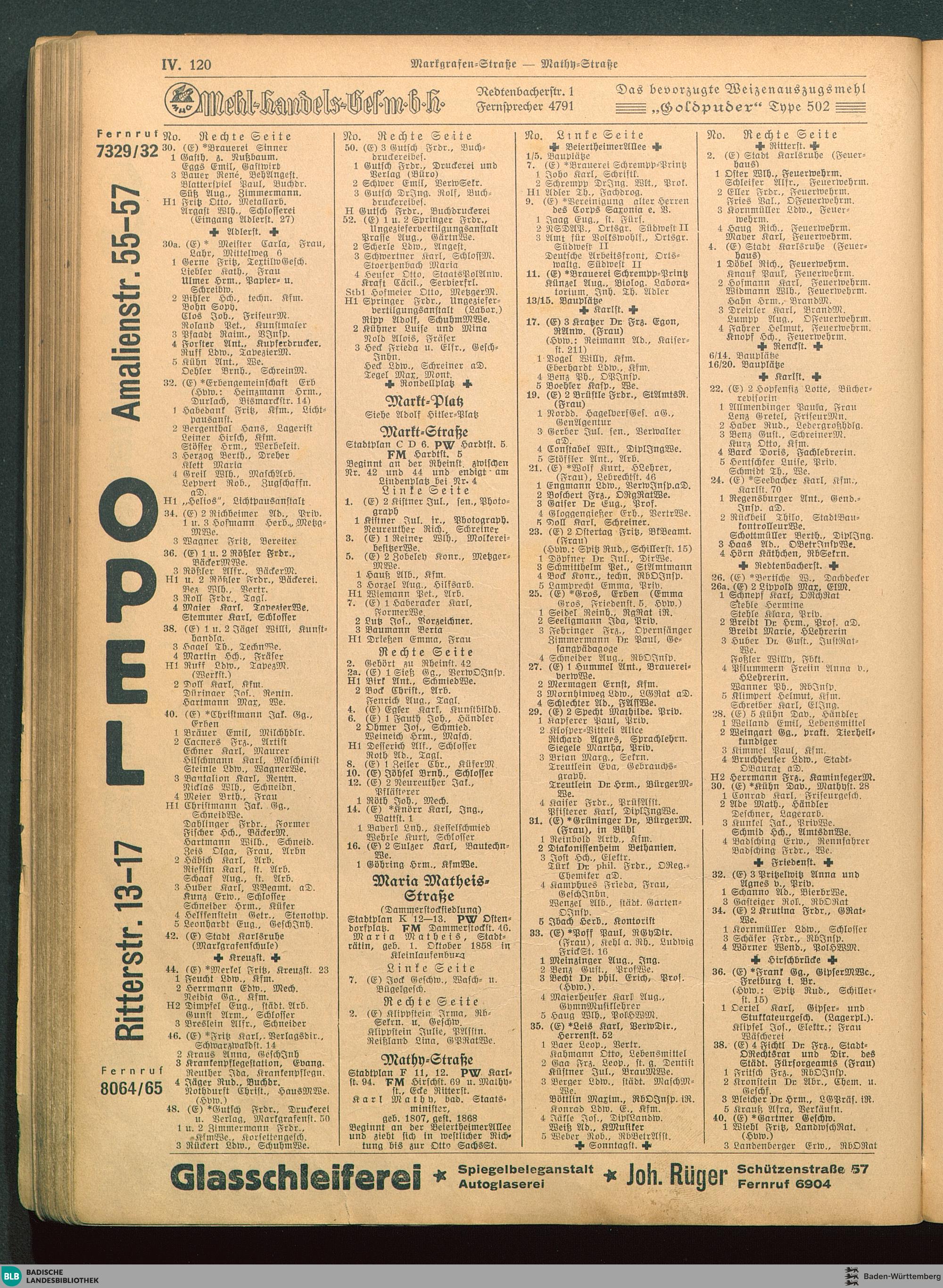 IV. Verzeichnis der Straßen (nach dem Abc) und Häuser (nach den Nummern) mit Angabe...