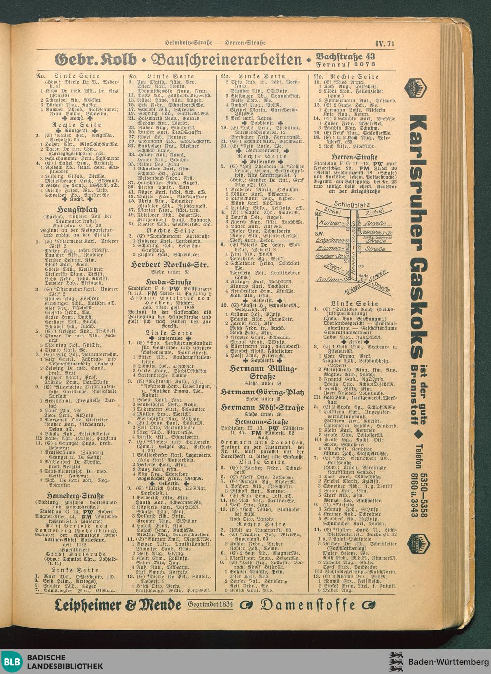 IV. Häuser-Verzeichnis mit Angabe der Eigentümer, Haushaltungsvorstände, Firmen,...