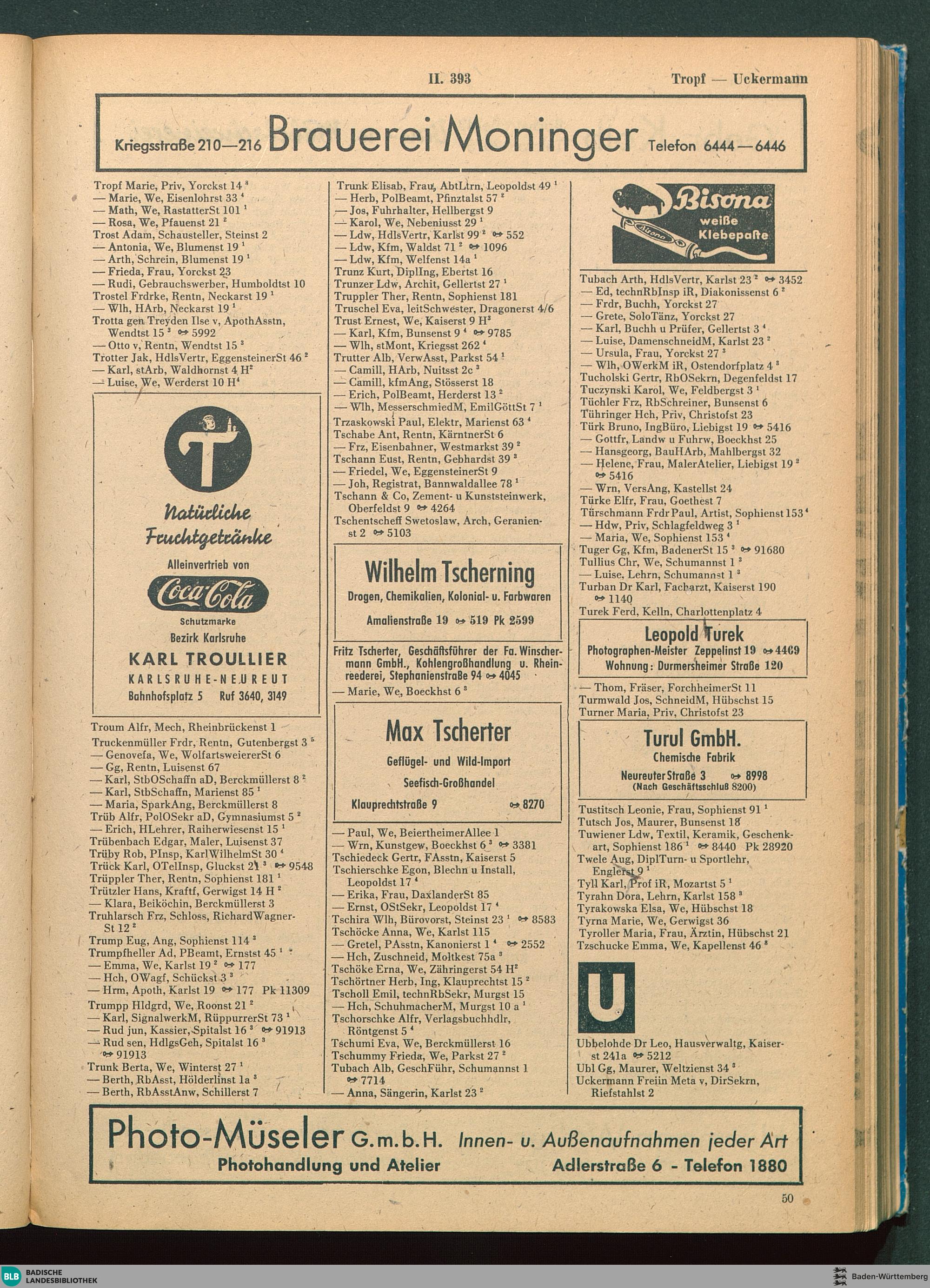 Abteilung II: Namen-Verzeichnis der Einwohner und Firmen nach dem Abc geordnet