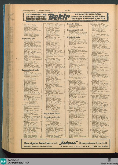 Adressbuch der Stadt Karlsruhe