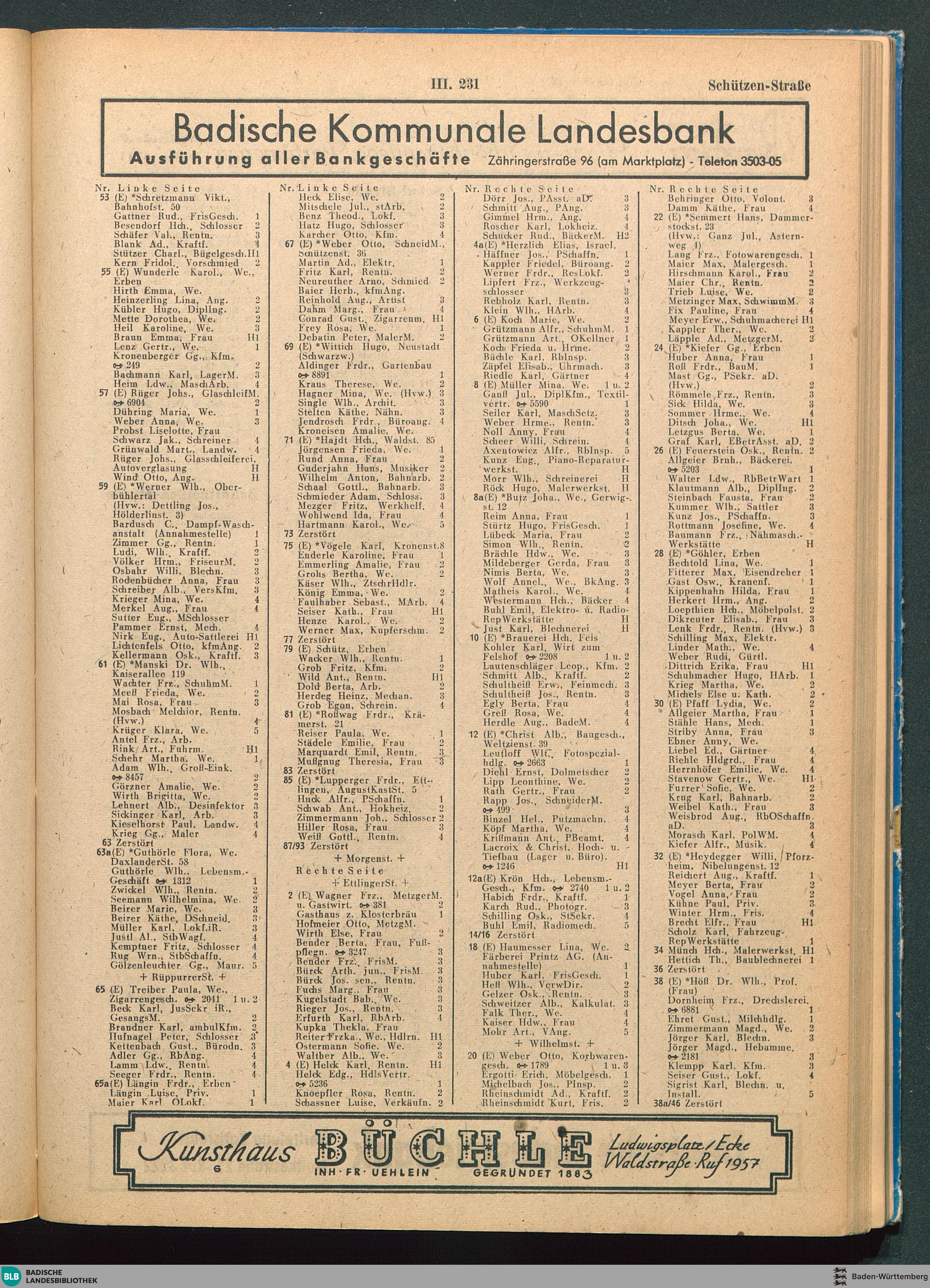 Abteilung III: Häuser-Verzeichnis mit Angabe der Einwohner, Haushaltsvorstände, Firmen...