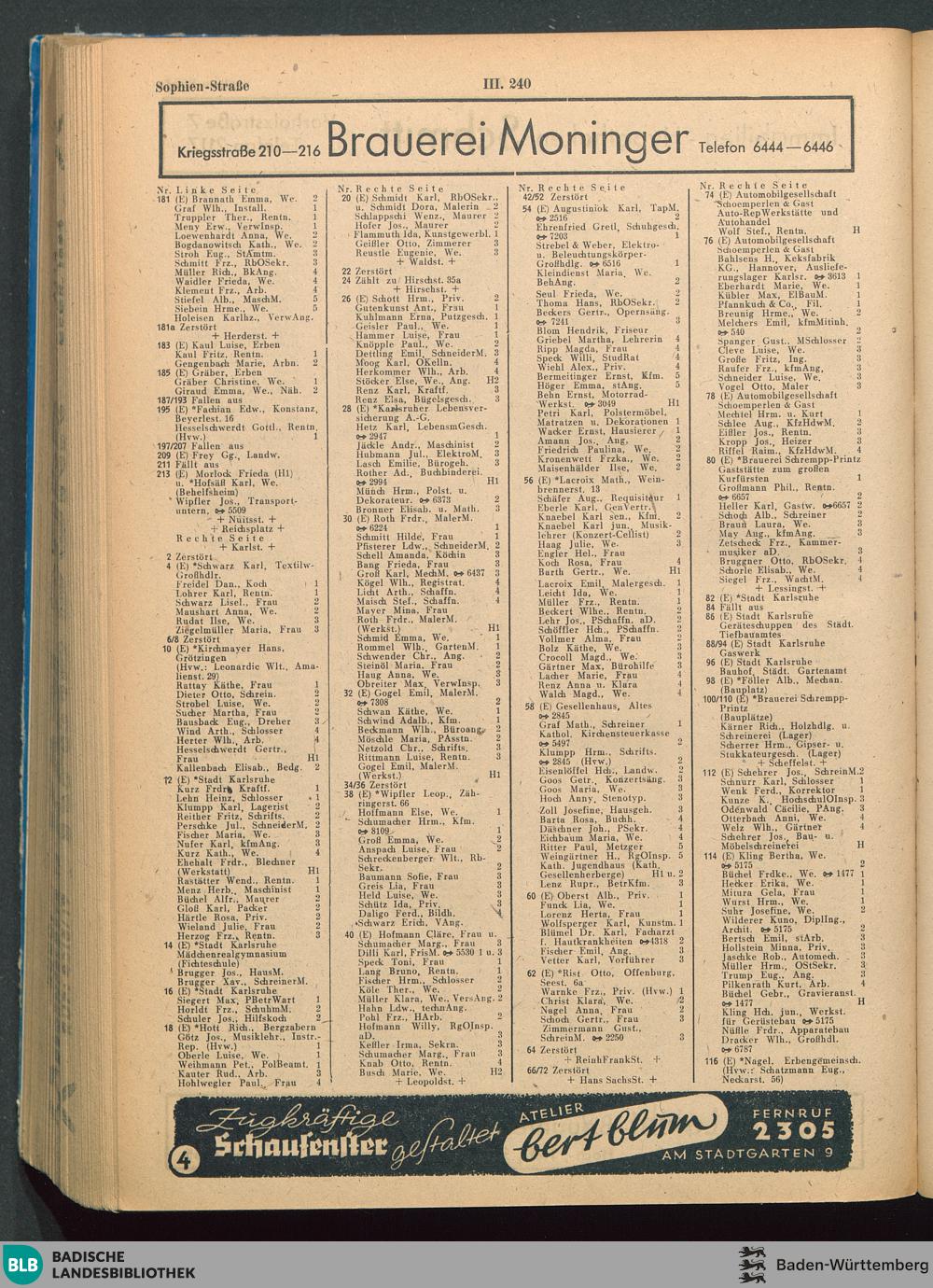 Abteilung III: Häuser-Verzeichnis mit Angabe der Einwohner, Haushaltsvorstände, Firmen...