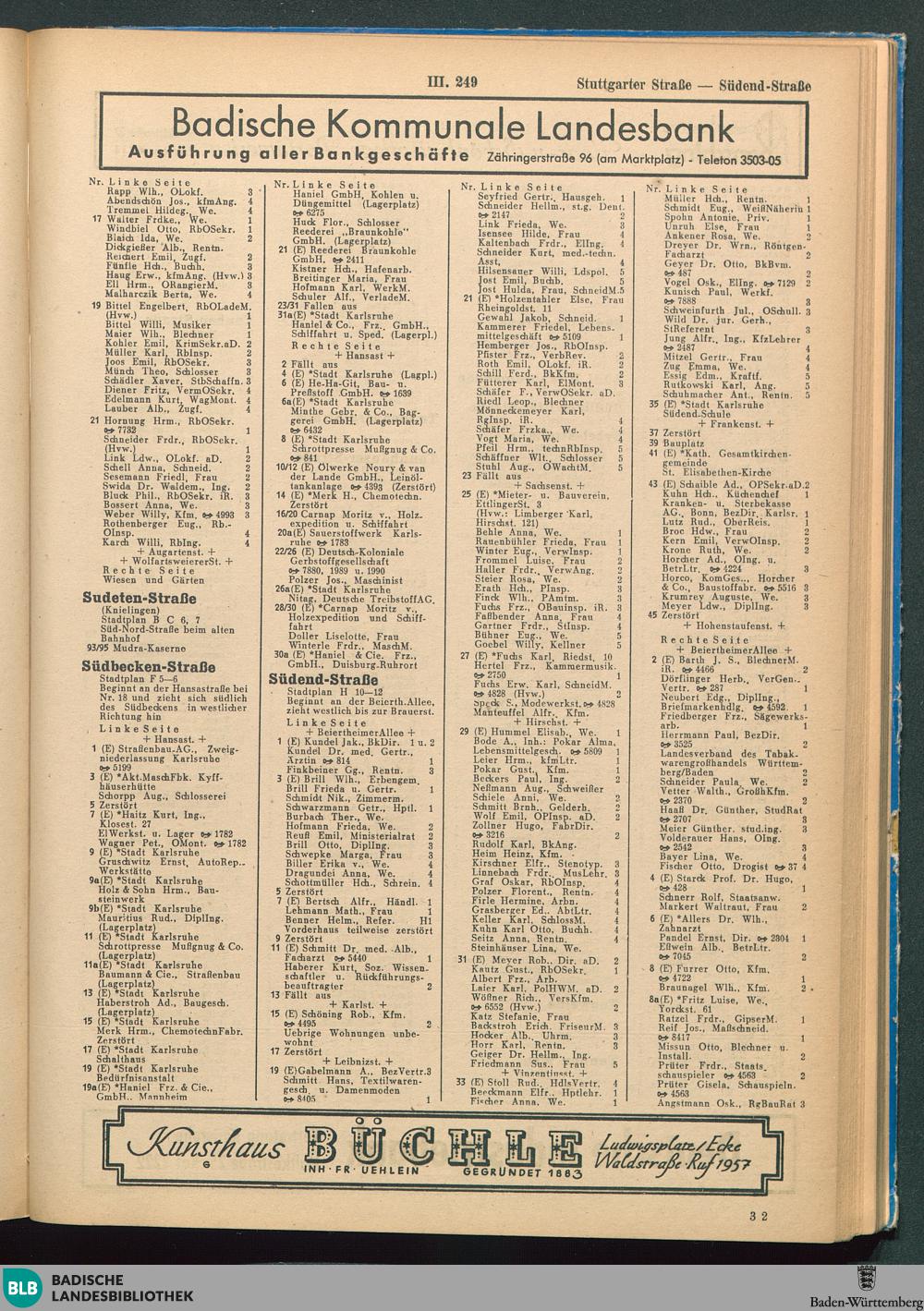 Abteilung III: Häuser-Verzeichnis mit Angabe der Einwohner, Haushaltsvorstände, Firmen...