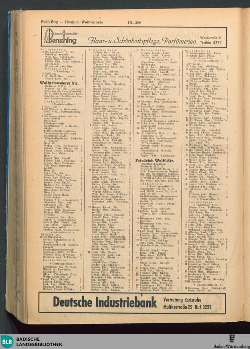 Abteilung III: Häuser-Verzeichnis mit Angabe der Einwohner, Haushaltsvorstände, Firmen...