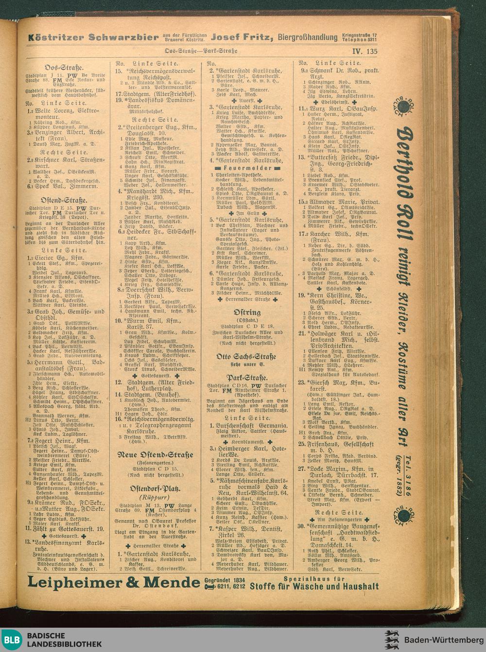 IV. Verzeichnis der Straßen und Häuser
