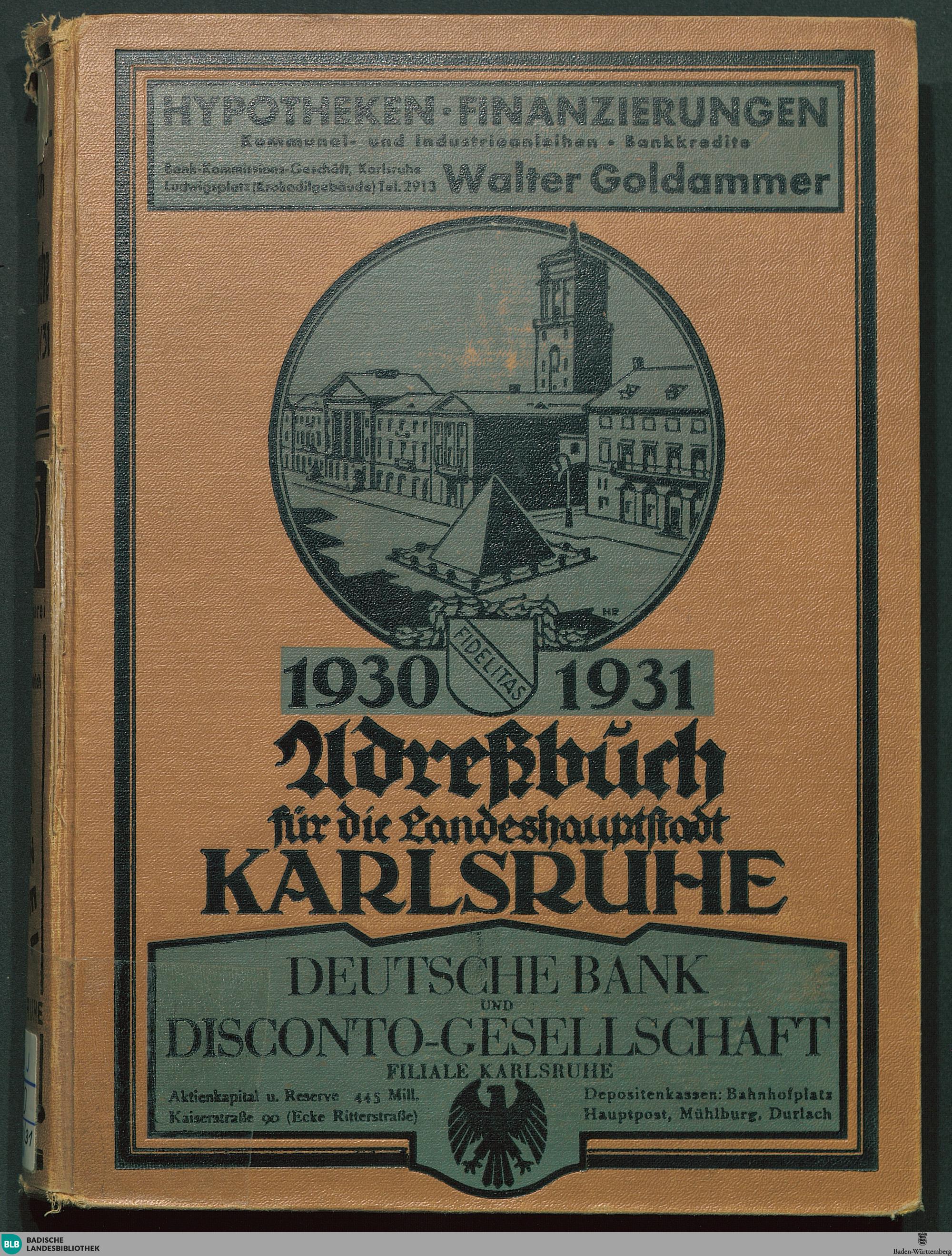 Adressbuch (Stadtbuch, Einwohnerbuch) der Landeshauptstadt Karlsruhe
