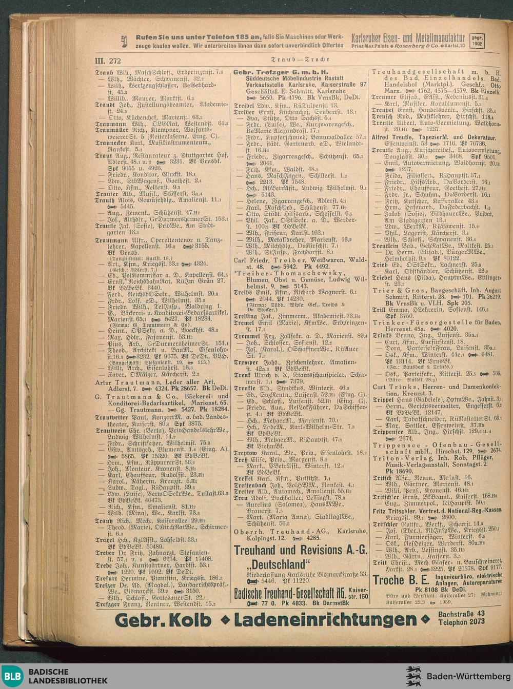 Adressbuch (Stadtbuch, Einwohnerbuch) der Landeshauptstadt Karlsruhe