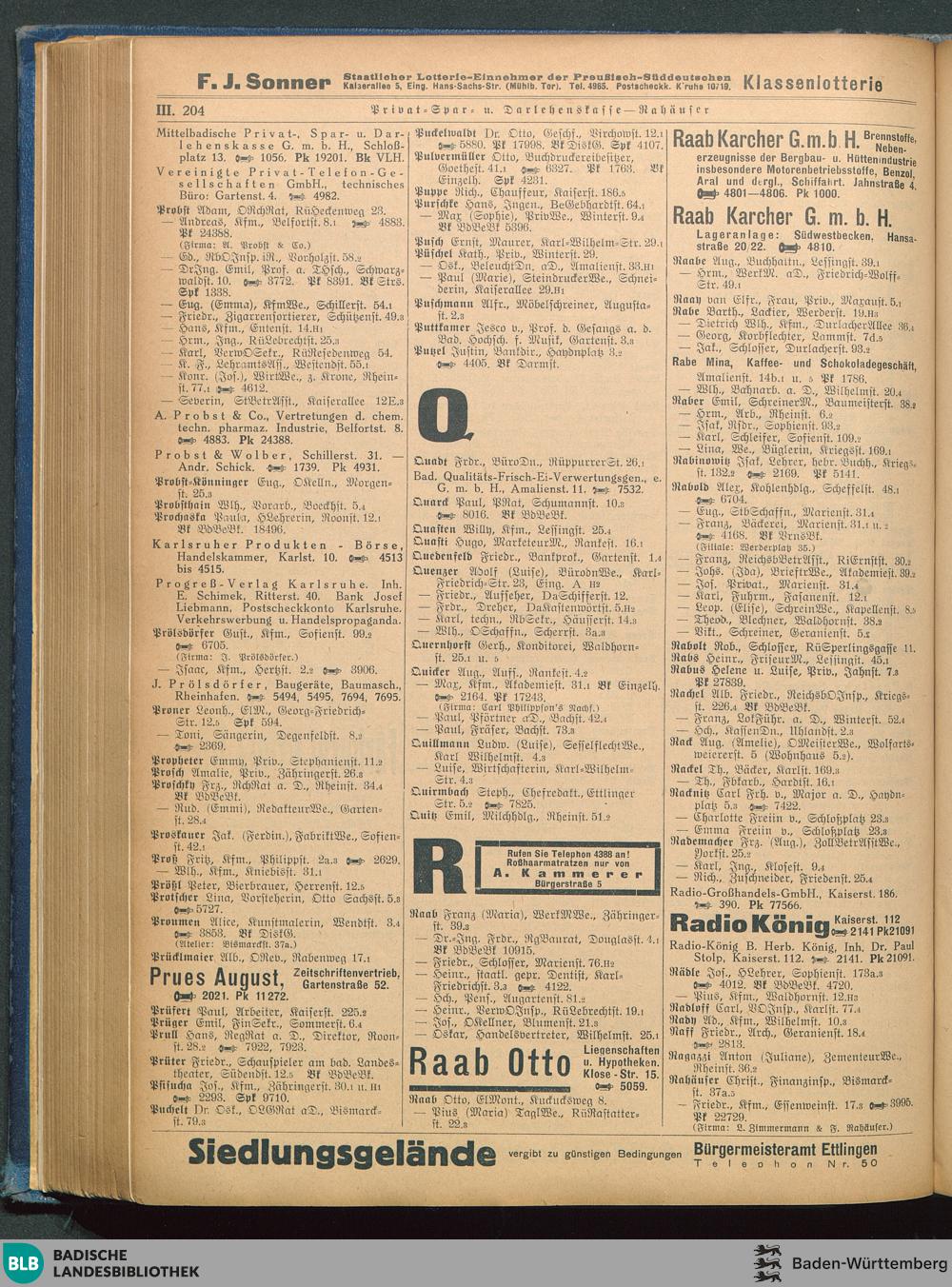 Adressbuch (Stadtbuch, Einwohnerbuch) der Landeshauptstadt Karlsruhe