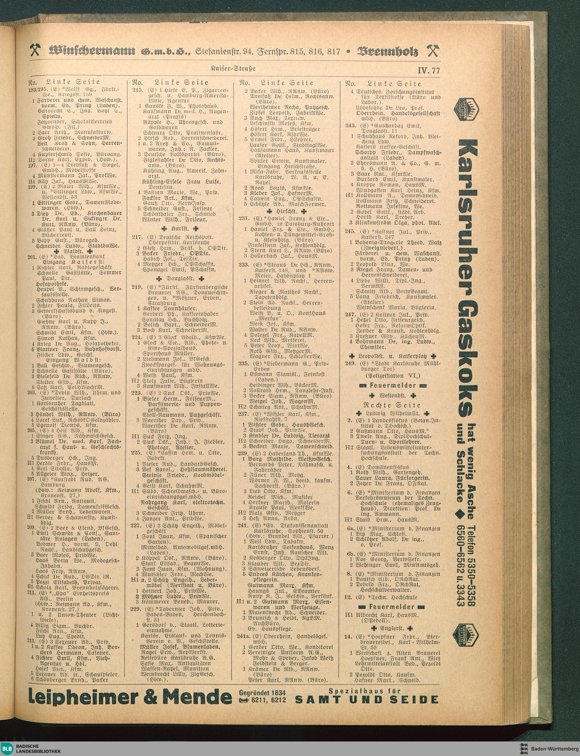 Adressbuch (Stadtbuch, Einwohnerbuch) der Landeshauptstadt Karlsruhe