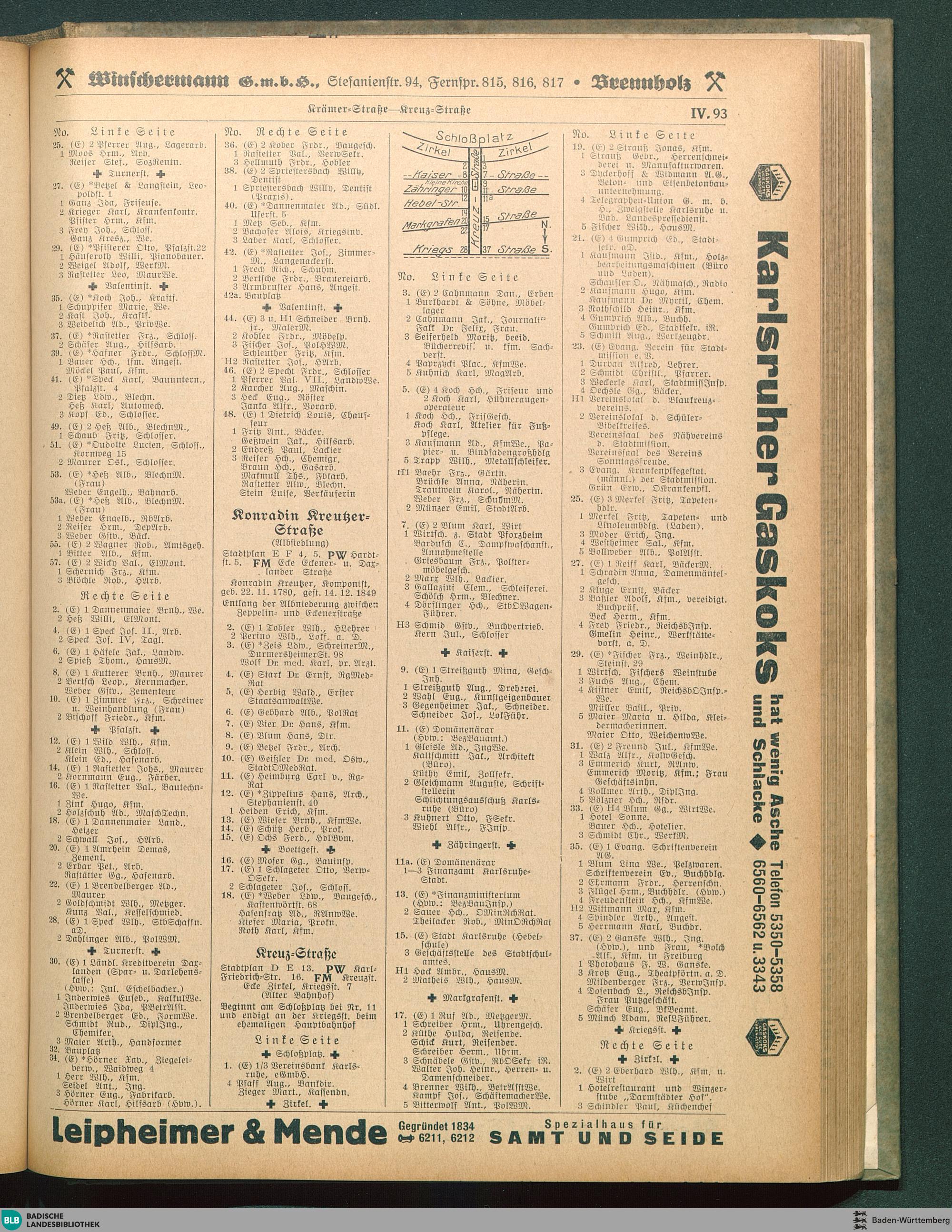 IV. Verzeichnis der Straßen (nach dem Abc) und Häuser (nach den Nummern) IV. Verzeichnis...