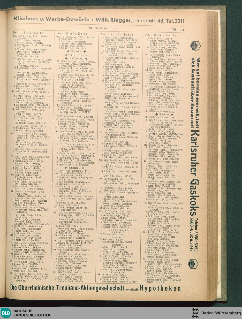 IV. Verzeichnis der Straßen (nach dem Abc) und Häuser (nach den Nummern) IV. Verzeichnis...