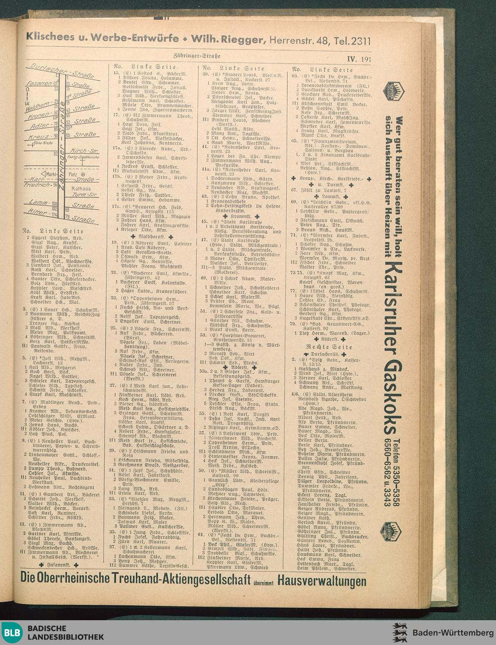 IV. Verzeichnis der Straßen (nach dem Abc) und Häuser (nach den Nummern) IV. Verzeichnis...