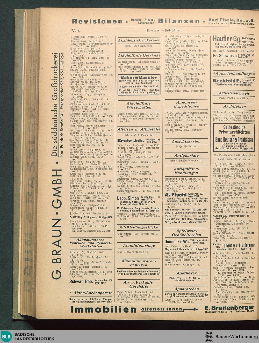 V. Verzeichnis der Handel- und Gewerbetreibenden sowie freier wissenschaftlicher...