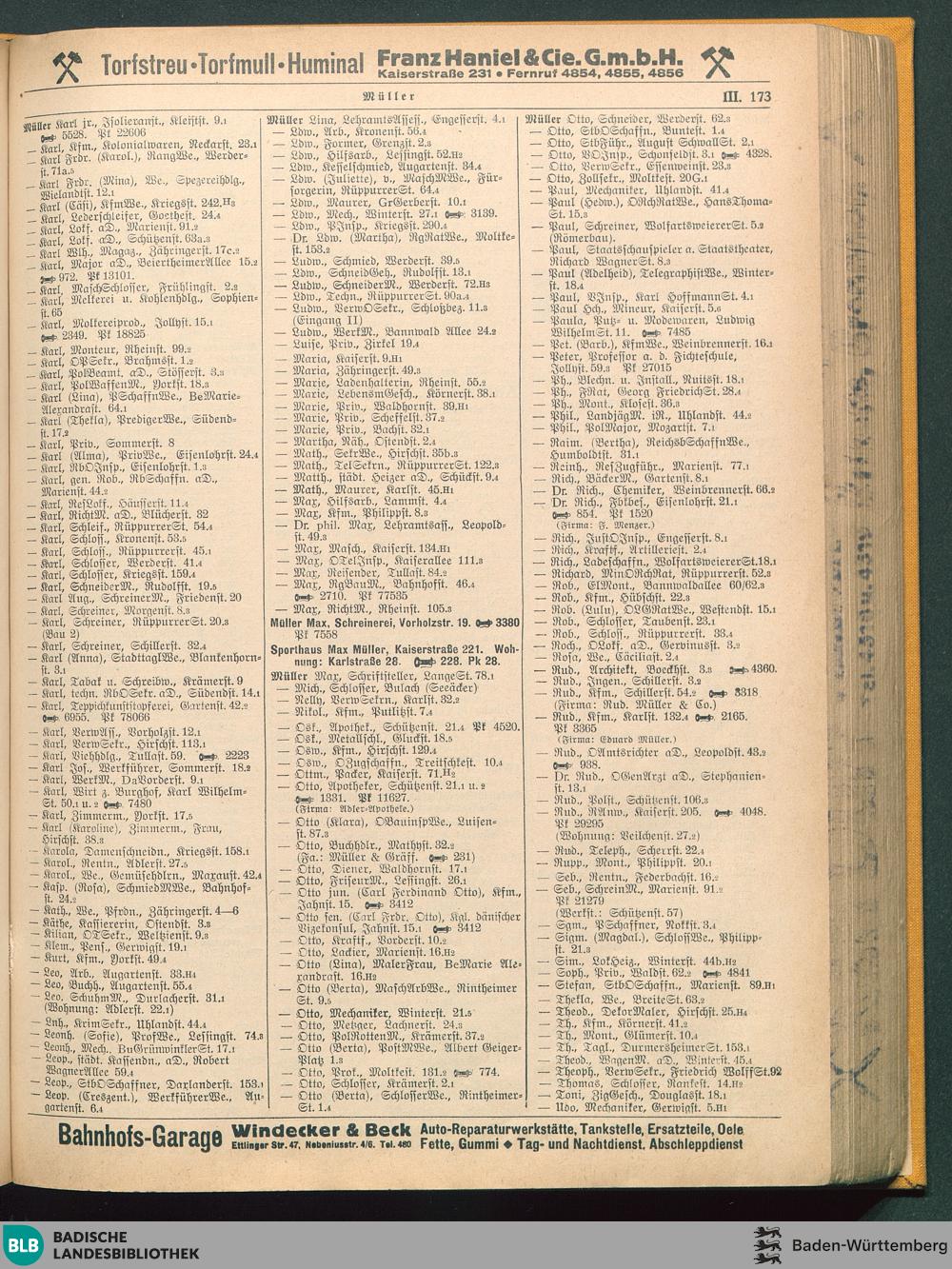 III. Verzeichnis der Einwohner und Firmen nach dem Abc